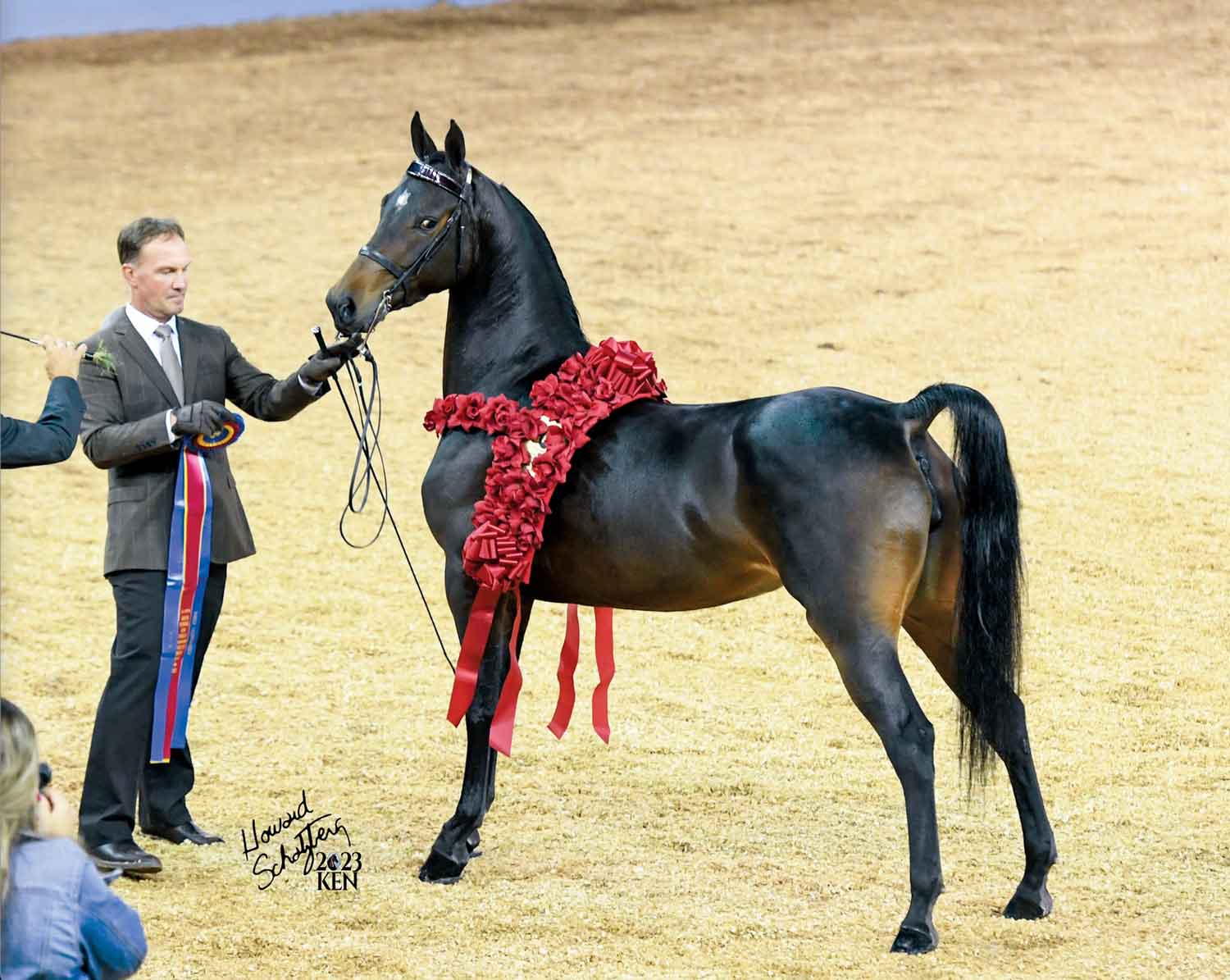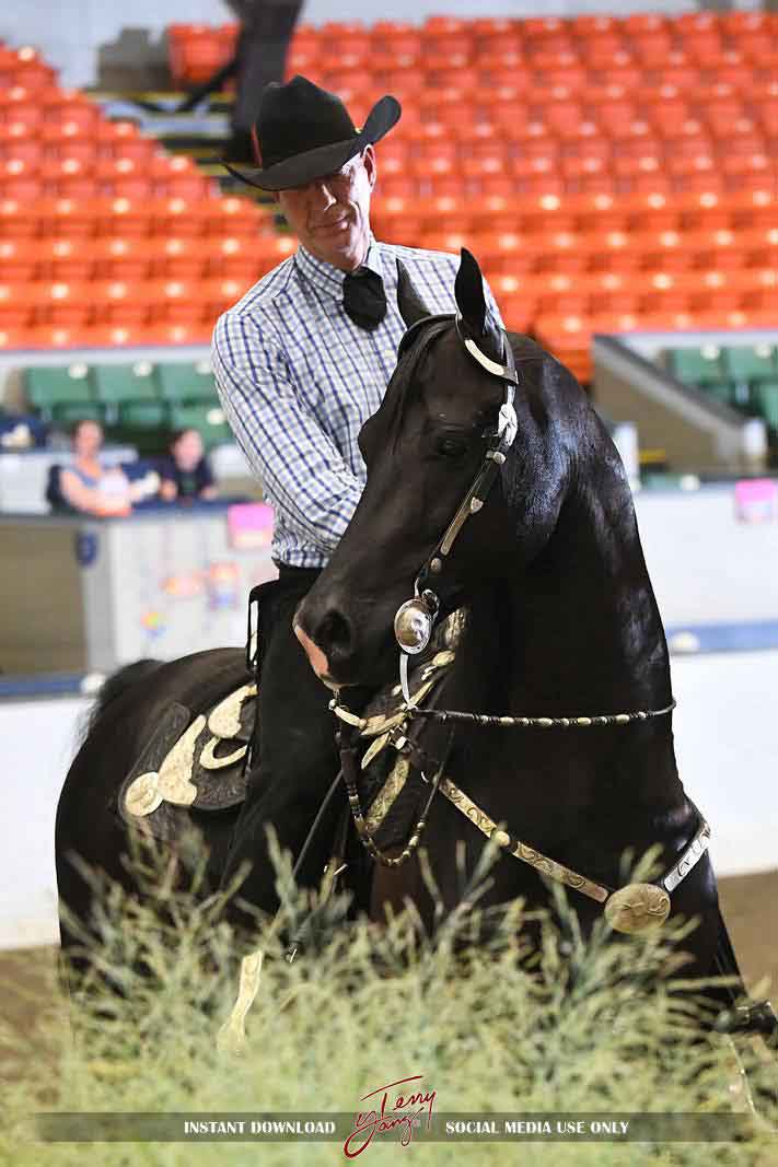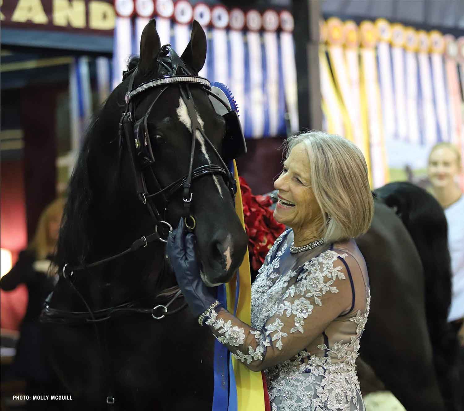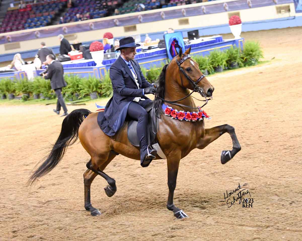 This talented and beautiful Morgan has conquered every division with ease, from in hand and park harness to park saddle, with World Champion titles in all three divisions, including open and amateur harness. His most recent world title was the highlight of his career for his owner, Dr. Grace Steere, who was on the lines for this electrifying performance as the 2025 Park Harness World Champion. This historic achievement made him one of only two living horses to win both the Park Saddle and Park Harness World Championships.